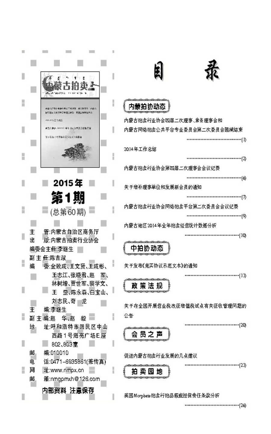 【內(nèi)蒙古拍賣2015年第1期(總第60期)】
