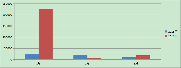 內蒙古地區(qū)2016年第一季度拍賣經(jīng)營統(tǒng)計數(shù)據(jù)分析 據(jù)全國拍賣行業(yè)管理信息系統(tǒng)顯示,截止3月底,全區(qū)共有拍賣企業(yè)146家,其中分公司4家。從業(yè)人員789人,拍賣師196人。2016年第一季度,拍賣成交131場,同比下降21% ,流拍112場,同步下降25%,實現(xiàn)成交額252255.74,同比增長355.9%,傭金收入465.85,同比下降26%。上繳稅收24.45,同比下降45%。利潤132.9,同比下降43%。 一、2016年一季度經(jīng)營情況 根據(jù)經(jīng)驗統(tǒng)計數(shù)據(jù)情況分析顯示:2016年第一季度與2015年同期相比除2月份下降64%,其余1月、3月均有上漲。其中1月份增長率高達864%。 2016年第一季度成交額情況 單位:萬元 | 1月 | 2月 | 3月 | 2015年 | 23391.06 | 21545.89 | 10395.36 | 2016年 | 225717.05 | 7562.07 | 18967.17 |