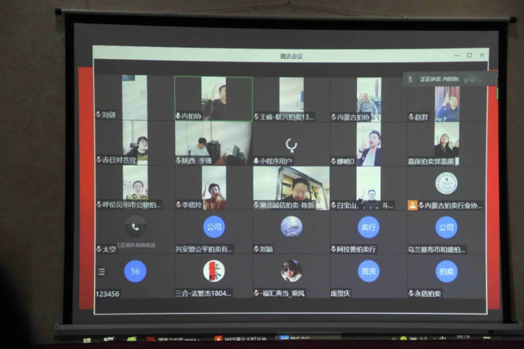 內(nèi)蒙古拍賣行業(yè)協(xié)會(huì)五屆五次理事會(huì) 暨五屆八次常務(wù)理會(huì)圓滿落幕 面對(duì)國際新冠肺炎疫情形勢依然復(fù)雜嚴(yán)峻且病毒傳播方式趨于多樣化,國內(nèi)多地零星散發(fā)和局部聚集性病例不斷出現(xiàn),為了大家的安全考慮,同時(shí)也考慮到大家的工作時(shí)間安排,本次內(nèi)蒙古拍賣行業(yè)協(xié)會(huì)五屆五次理事會(huì)暨五屆八次常務(wù)理會(huì)采取了線上形式召開。 2021年1月28日上午九點(diǎn),會(huì)議準(zhǔn)時(shí)召開。現(xiàn)場參會(huì)人員有會(huì)長王志江、秘書長娜晴、副會(huì)長趙軍、王罡、郭素英;騰訊會(huì)議室線上參會(huì)人員有副會(huì)長白寶山、李曉玲、林樹增、王峰、趙秋霞、高燕剛、王鳳林、劉劍;常務(wù)理事宋一峰;理事惠彬、劉俊峰、艾常明、張宏宇以及委托授權(quán)參會(huì)的內(nèi)蒙古萬鼎拍賣有限責(zé)任公司總經(jīng)理?xiàng)钭忧洹跆m察布和盛拍賣有限公司郭建香等代表共計(jì)28人參會(huì),符合《章程》參會(huì)規(guī)定。 本次會(huì)議主要議題有: (1)審議2020年內(nèi)蒙古拍賣行業(yè)協(xié)會(huì)工作報(bào)告; (2)審議2020年財(cái)務(wù)報(bào)告; (3)審議協(xié)會(huì)會(huì)費(fèi)(企業(yè))繳納情況; 會(huì)議由王罡副會(huì)長主持召開,王會(huì)長表示由于疫情原因我們沒能面對(duì)面交流,但是我們勇于嘗試新事物,采取線上線下相結(jié)合的會(huì)議模式,大家在網(wǎng)絡(luò)會(huì)議室一樣可以暢所欲言,為我們行業(yè)建言獻(xiàn)策。會(huì)議首先由王志江會(huì)長做《2020內(nèi)蒙古拍賣行業(yè)協(xié)會(huì)工作報(bào)告》報(bào)告中向各位參會(huì)人員介紹了1-12月份的全區(qū)拍賣行業(yè)與去年同期的經(jīng)營統(tǒng)計(jì)分析對(duì)比,從數(shù)據(jù)中以及圖表里可以看出我區(qū)拍賣業(yè)務(wù)是受到疫情影響的,多個(gè)業(yè)務(wù)板塊出現(xiàn)負(fù)增長;報(bào)告中還介紹了2020年協(xié)會(huì)在疫情初期的一些重點(diǎn)工作;協(xié)會(huì)承接的商務(wù)廳的“節(jié)能宣傳周”和“安全生產(chǎn)月”兩項(xiàng)活動(dòng),以及關(guān)于司法輔助工作多次走訪高院并出具相關(guān)文件函詢和協(xié)會(huì)收到企業(yè)反饋并與委托方協(xié)調(diào)出具相關(guān)意見函等情況。 娜晴秘書長匯報(bào)了2020年全年的財(cái)務(wù)收支情況,并感謝大家一直以來對(duì)協(xié)會(huì)秘書處工作的支持和幫助,協(xié)會(huì)一直都是以會(huì)員單位服務(wù)為宗旨,充分發(fā)揮橋梁、紐帶、協(xié)調(diào)、服務(wù)的職能,為維護(hù)企業(yè)的合法利益,促進(jìn)行業(yè)健康有序的發(fā)展在不斷的努力,希望今后大家可以更加積極的配合協(xié)會(huì)工作。 郭素英副會(huì)長通報(bào)了今年的會(huì)費(fèi)繳納情況,大家紛紛表示繳納會(huì)費(fèi)是我們會(huì)員的基本義務(wù),希望大家都能按時(shí)繳納會(huì)費(fèi)。 隨后王罡副會(huì)長主持審議了以上三項(xiàng)會(huì)議內(nèi)容,與會(huì)代表舉手表決通過。 上午理事會(huì)后,協(xié)會(huì)安排了網(wǎng)路形式的行業(yè)論壇,首先邀請(qǐng)到陜西省公共資源交易中心李鋒處長做《拍賣機(jī)構(gòu)與交易平臺(tái)的合作發(fā)展》的講解,李處從新形勢下拍賣機(jī)構(gòu)發(fā)展面臨的挑戰(zhàn)和機(jī)遇,掌握在交易平臺(tái)組織拍賣活動(dòng)的工作內(nèi)容和要點(diǎn),探討化解交易風(fēng)險(xiǎn),實(shí)現(xiàn)交易目標(biāo)的方式方法出發(fā),多個(gè)角度多個(gè)方面闡述了新形勢下拍賣機(jī)構(gòu)發(fā)展面臨的挑戰(zhàn)和機(jī)遇,以及如何利用公共資源交易平臺(tái)開展拍賣活動(dòng)的要點(diǎn)與方法。給我區(qū)廣大企業(yè)和拍賣師帶來了一些新的思路。 接著我們邀請(qǐng)到了湖北兩家優(yōu)秀的企業(yè)代表分享了他們的先進(jìn)經(jīng)驗(yàn)。湖北誠信拍賣有限公司的陳新副總經(jīng)理介紹了開展藝術(shù)品“周周拍”的做法。其實(shí)“周周拍”這種形式非常鮮活生動(dòng),我們可以不僅僅局限于大件的拍品房子、車子,更多的轉(zhuǎn)換思路走向生活的生產(chǎn)生活用品。這個(gè)也是內(nèi)蒙企業(yè)可以去考慮的一個(gè)方向。 最后由湖北德潤古今拍賣有限公司楊晨副總經(jīng)理介紹了湖北省第一單國有土地“云拍賣”的做法。湖北的疫情結(jié)束后,反而讓湖北的企業(yè)將拍賣的重心放到了網(wǎng)絡(luò)云拍賣上來,他們公司自主研發(fā)的拍賣平臺(tái)用來解決當(dāng)?shù)貒匈Y產(chǎn)和土地的線上拍賣,并取得了很好的成果。交流結(jié)束后與會(huì)人員普遍認(rèn)為“云拍賣”方式在這樣疫情突發(fā)的情況下顯得尤為重要,我區(qū)的拍賣企業(yè)應(yīng)該扭轉(zhuǎn)思路,充分利用拍賣+互聯(lián)網(wǎng)的強(qiáng)大優(yōu)勢,努力提高自身的競爭力。